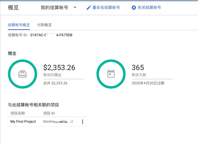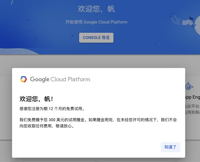 4.搞定了上面的,重新进入Google Cloud中,就可以看到已经到账了。