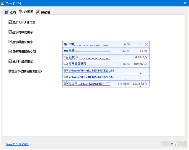 可通过勾选选项,选择是否显示某类资源的监控数据(需重启程序生效)。