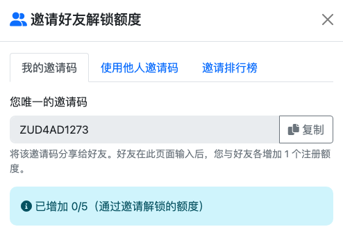 注册即享5个免费额度;邀请好友解锁,你和好友可分别获得一个额度,最多可以再增加5个额度。