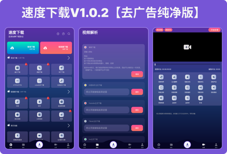 - 纯净无干扰:去除所有广告模块,无弹窗、开屏广告,专注下载与处理体验,界面清爽简洁。