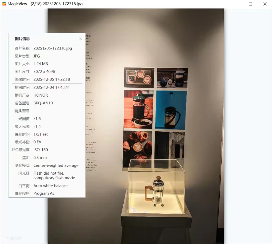 - 专业信息查看:按下 Tab 键即可查看图片详细 EXIF 参数,包含分辨率、DPI、位深等关键信息,满足摄影爱好者与专业用户需求
