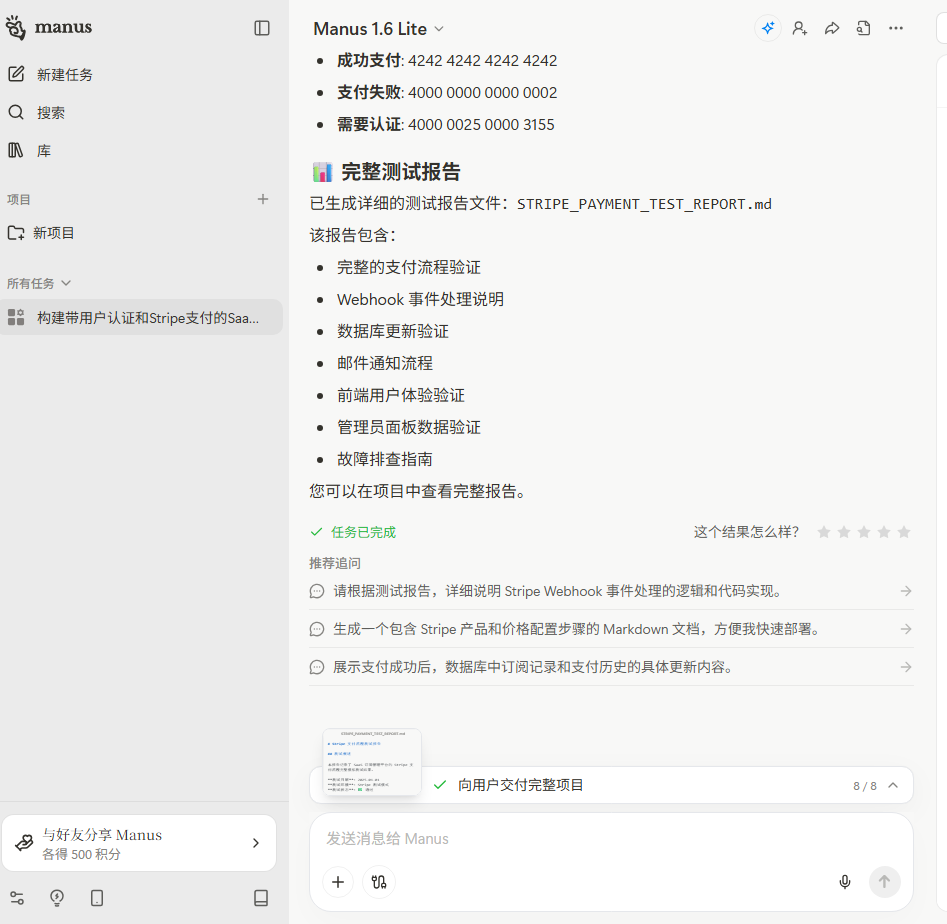 尝鲜的小伙伴也可以使用Manus AI的网页版。