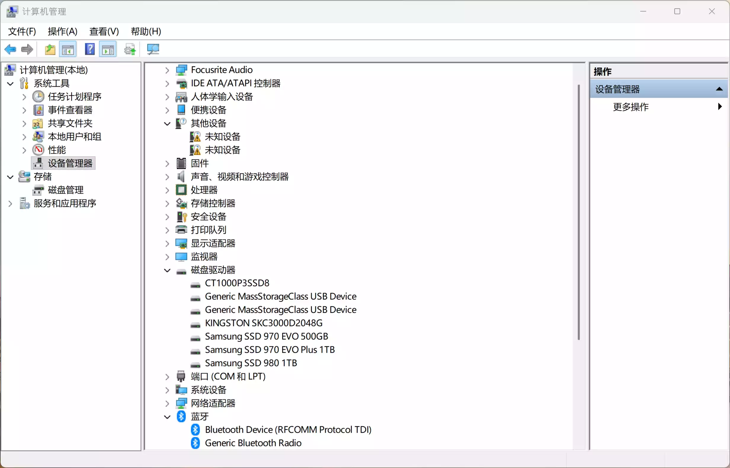重启后,启用前 SSD 会显示在“磁盘驱动器”分类下。