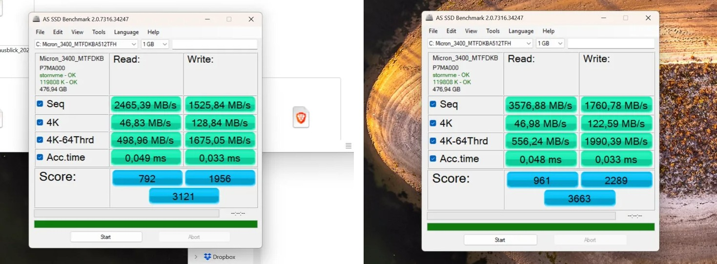 如需对比开启前后的性能差异,可以使用 AS SSD Benchmark: