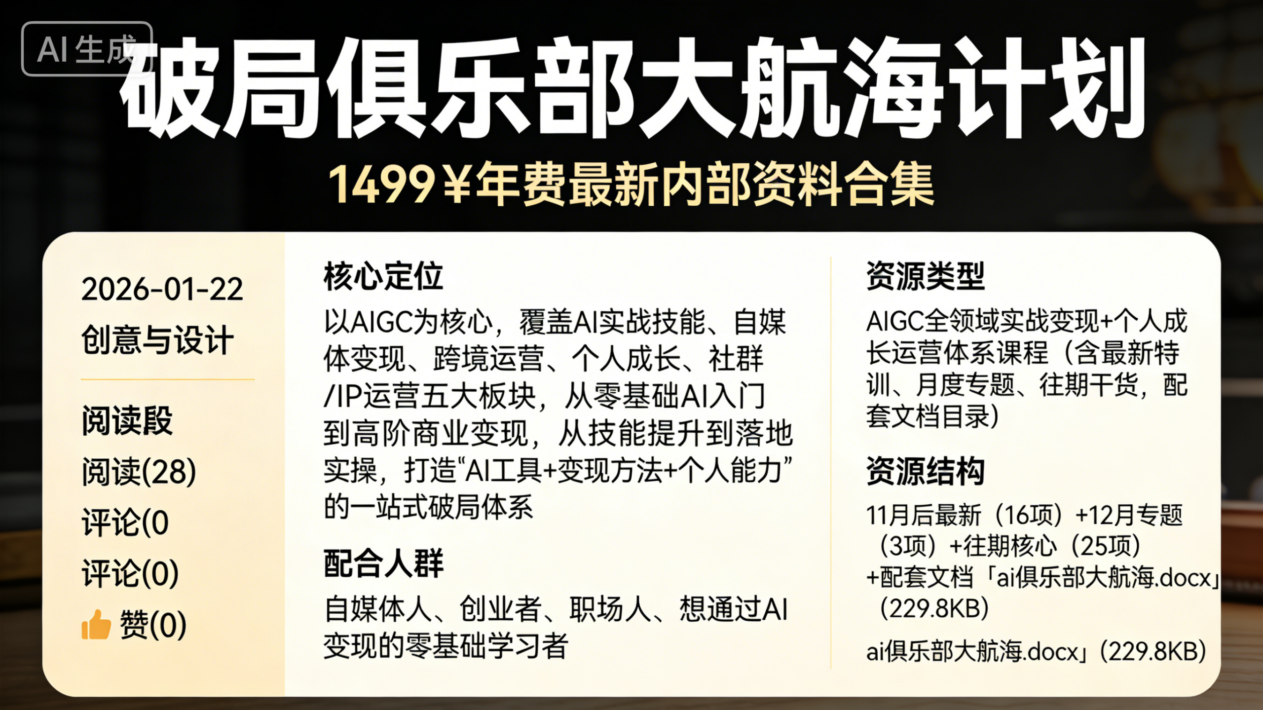 适配人群:AIGC 变现创业者、自媒体从业者、职场提效需求者、跨境运营玩家、IP 打造者、想提升综合能力的个人成长爱好者