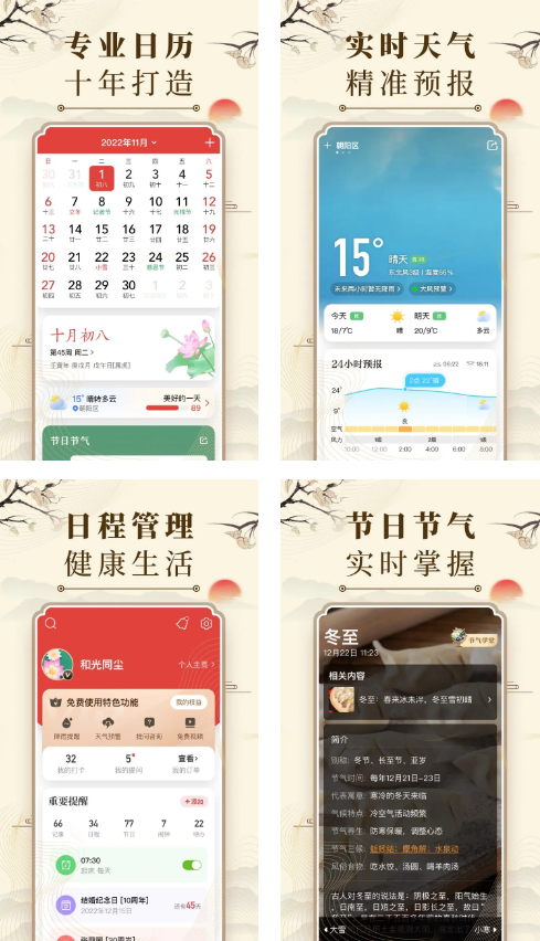 - 全量日历查询:农历、黄历随心看,节假日、二十四节气信息全覆盖,传统历法需求一站式满足;