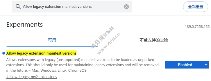 Allow legacy extension manifest versions - 将该项设置为 Enabled(启用)。